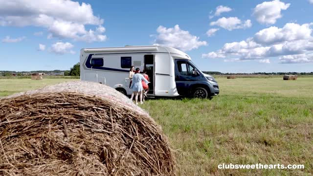 They pile into a camper for a short vacation, with Hazel Grace behind the wheel, driving them toward new adventures. Candence Shanti, Alice Klay, Remido, and Hazel Grace get naked in the open air, swapping kisses and grabbing every ass and tit in sight. Our sweethearts glisten in the sun sliding their tongues deep into each other's pussies. It’s a kinky foursome fun with no shame, no rules, just sweat and pleasure. End of summer? More like the climax of it!