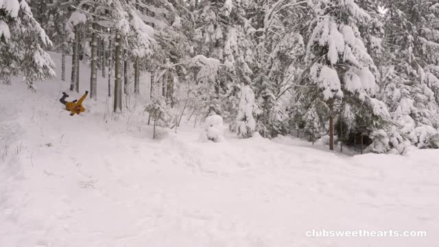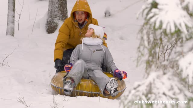 In "Warm me up!", our cute couple plays on a snow slope on a gorgeous snowy day pulling each other around on a little sleigh. Iris slips, Cristafeer pulls her back up, and they can't stop touching and teasing. The cold makes them bold. They decide the snow has done its job and head inside. The door closes and the mood flips fast! Cristafeer tugs at Iris' cozy onesie and starts kissing her tits and finger her pussy. Iris returns the favor making him hard and ready to heat things up with an unforgettable fucking session.