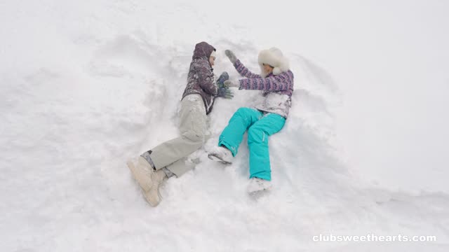 "Brr, warm me up!" Kate grins and joins the fun, dropping her panties to flash her pussy, teasing Alia with soft little touches that make them both hot and spicy. Their lips meet in sweet, lingering kisses, going down to their moist pussies. Alia slides lower, lapping lovingly at Kate's pink clit until soft moans fill the quiet room.
