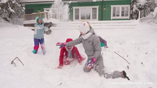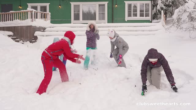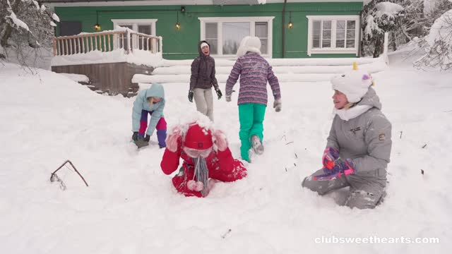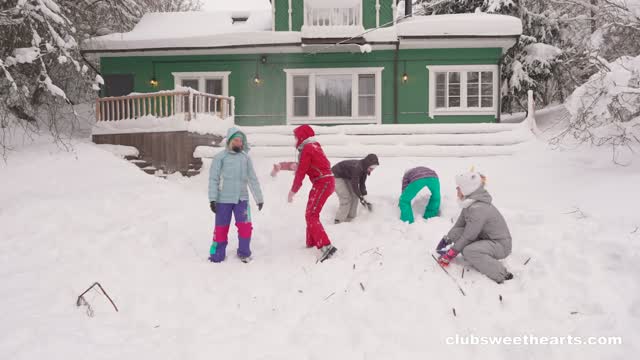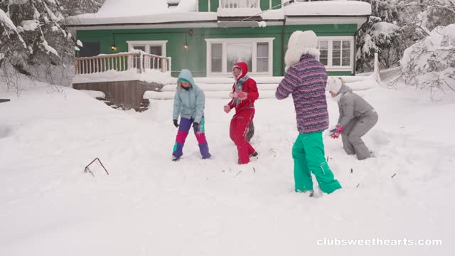 Why do all good things come to an end? In the final blast of "Frosty Sweethearts 3/3," our adorable crew Iris Murai, Alia Sta, Kate Rose, Alice Klay, and Vivi zip into cozy onesies and dive into the fluffy snow playing with each other. Our sweethearts squeal, tossing snowballs, rolling around, getting all wet and giggly! Freezing nipples poke hard while their pussies tingle from the cold. "It's too chilly" so they head inside. Inside, they get naked fast, leaving socks on, playing with their tits while their pussies are soaking wet. The room fills with happy moans and little laughs as they take turns eating each other out, fingering playfully, and sharing yummy group kisses until everyone shivers with cute, cuddly orgasms proving that winter can be pretty hot if you know where to rub!