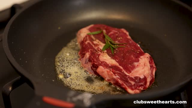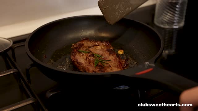 Cristafeer drags himself home from work, starving and beat. Anastaysha Bee couldn't let Steak & Blowjob Day go unnoticed so she greets him in a tiny sexy thong, long hair swaying as she plates a sizzling juicy steak. He plops down at the table, digs in with two big bites: perfect! When suddenly, her naughty hands are unzipping his pants under the table. She drops to her knees with a playful smile, wraps her lips around his cock for a sloppy, hungry blowjob right there. Steak forgotten, moans are mixing with the smell of dinner. Best Steak & Blowjob Day ever!